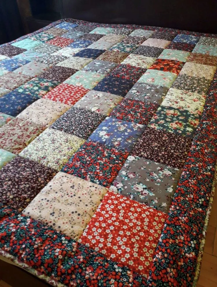 - Square Size: Decide on the size of the squares. As with the quilt in the photo, ideally, you should cut squares measuring approximately 15 cm x 15 cm.